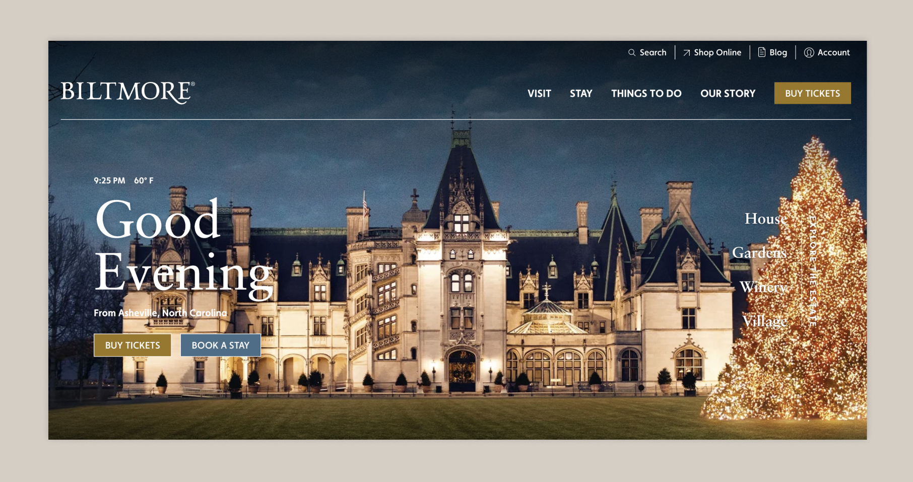 The Biltmore came to us with a need to have a new site that would improve the user experience across the site, but especially in the case of selling tickets and lodging and helping visitors find experiences for their visit. Starting with a months-long user testing study of the old site and then taking initial designs from our Art Director, our team divided and conquered this project of 100+ templates that would become thousands of pages. The design focuses on showing timeless elegance in the modern age, utilizing simple accents and beautiful interactive designs to translate the grandeur of the Biltmore mansion today. The project won Best of Website in the Knoxville American Advertising Awards. You can view the live site here.